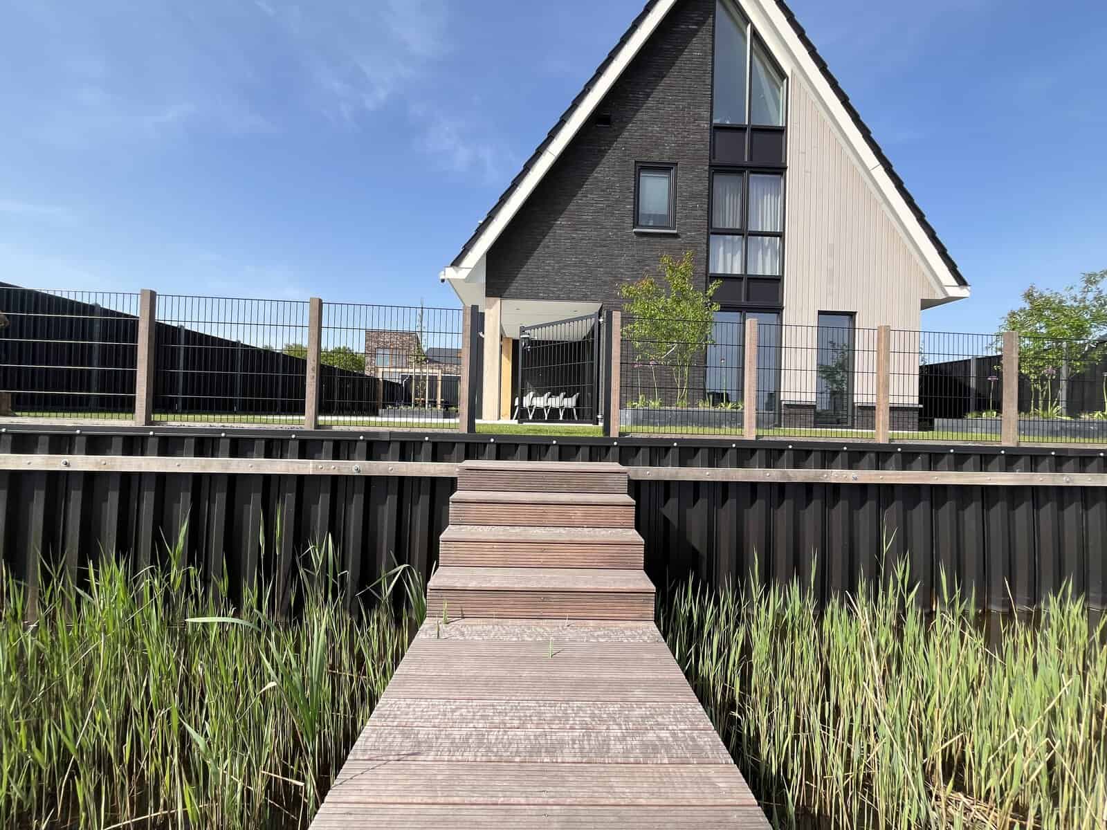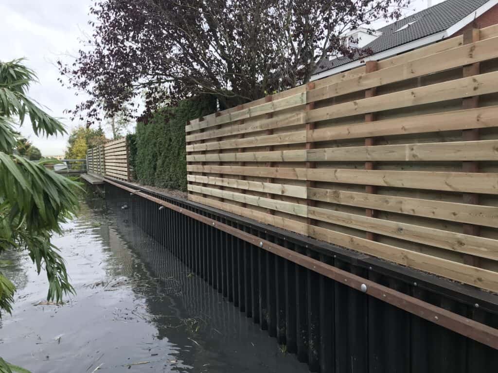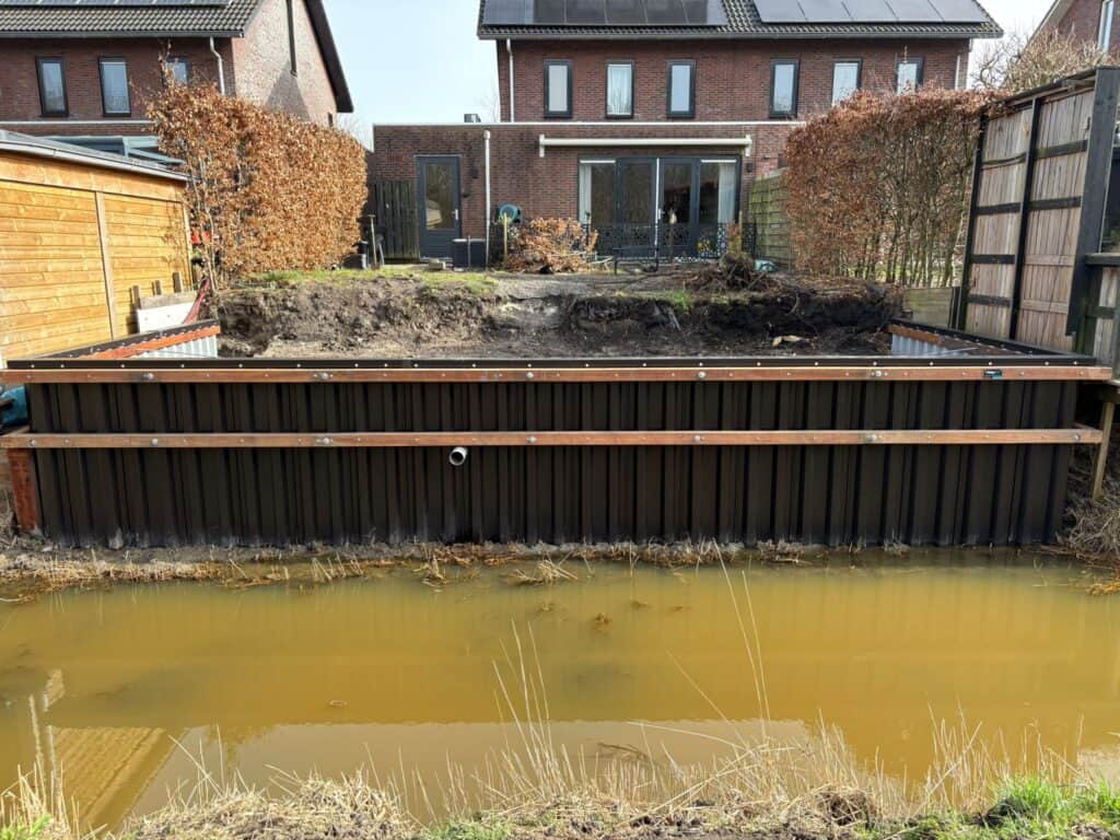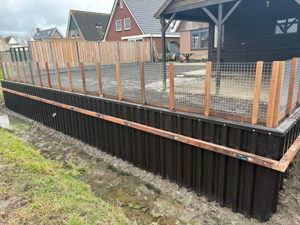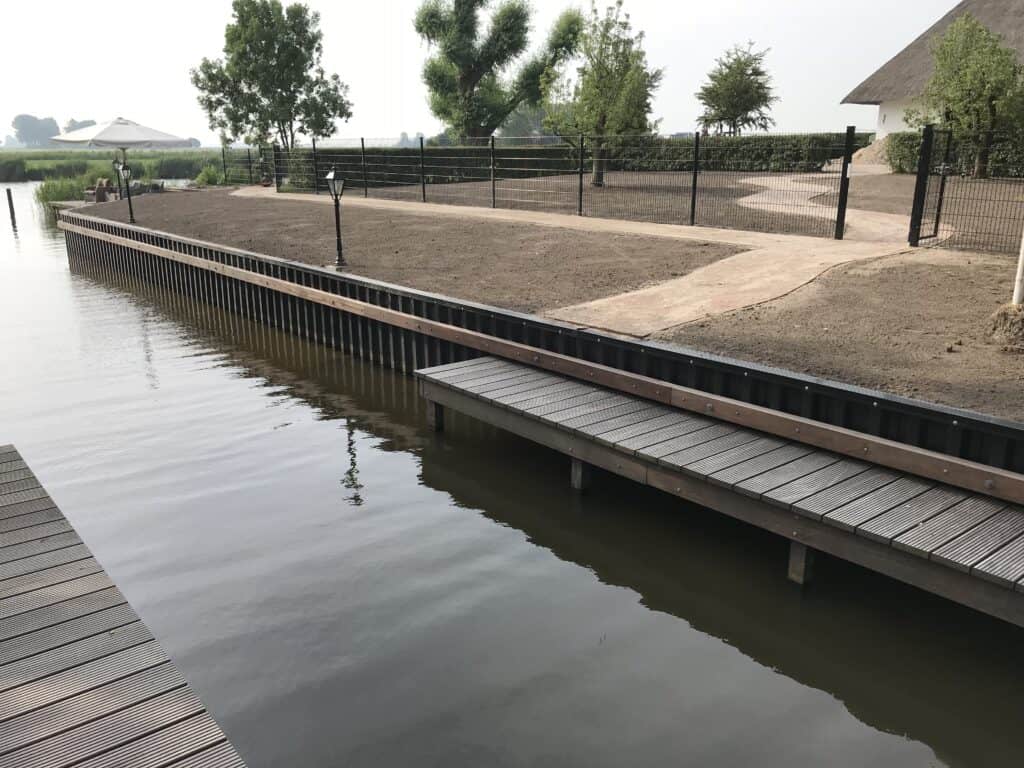 Kunststof beschoeiing is een stevige, onderhoudsarme manier om de oever van je tuin of terrein netjes af te werken en te beschermen tegen afbrokkelen of wegspoelen.