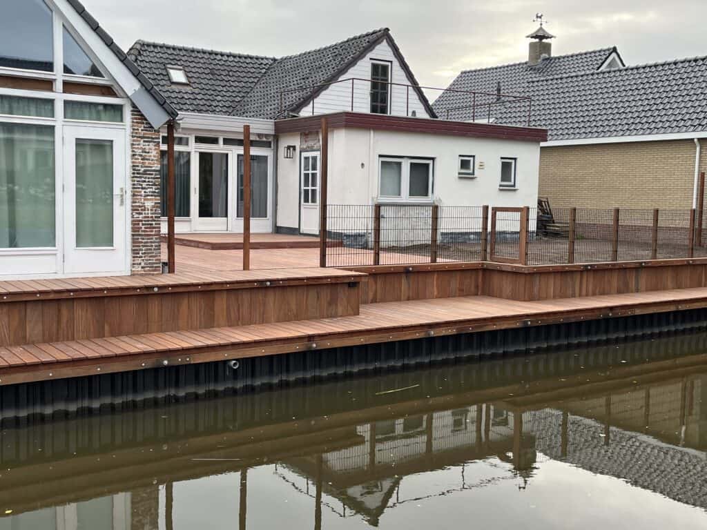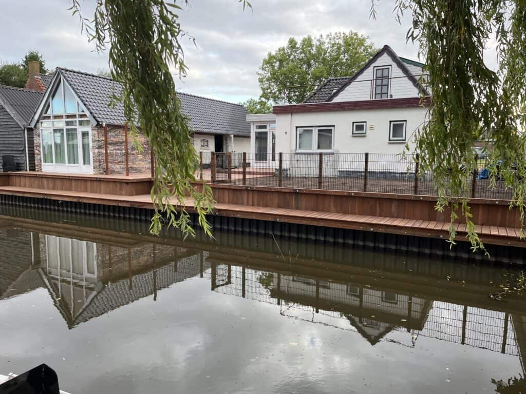 In Augustinusga is een erf aan het water vernieuwd met een kunststof walbeschoeiing. Deze moderne beschoeiing zorgt voor een stevige oever en voorkomt afkalving, terwijl het onderhoud minimaal blijft. Het geheel is strak afgewerkt en sluit mooi aan bij de tuin en woning. Zo ontstaat er niet alleen een duurzame oplossing voor de lange termijn, maar ook een nette en verzorgde uitstraling langs het water.