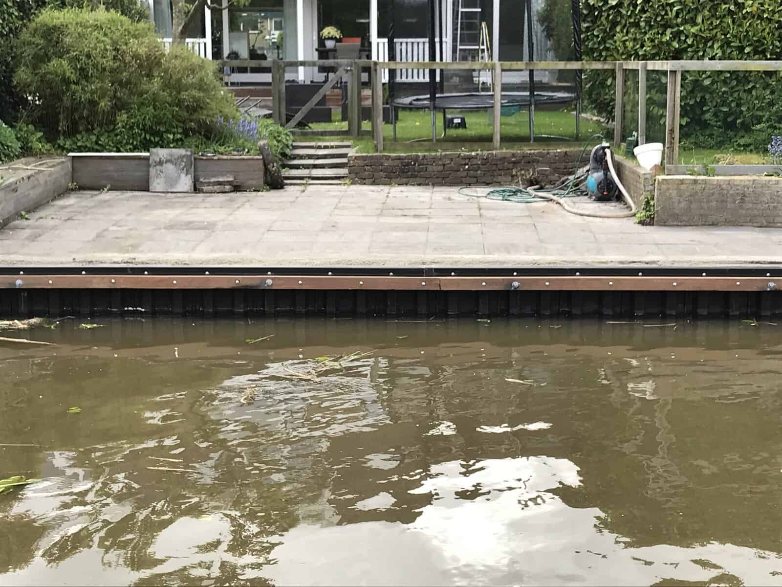 In Burdaard hebben we een tuin voorzien van nieuwe kunststof walbeschoeiing. De oude hardhouten beschoeiing was aan vervanging toe, en de bewoners kozen voor een duurzaam alternatief dat jarenlang meegaat zonder onderhoud.
