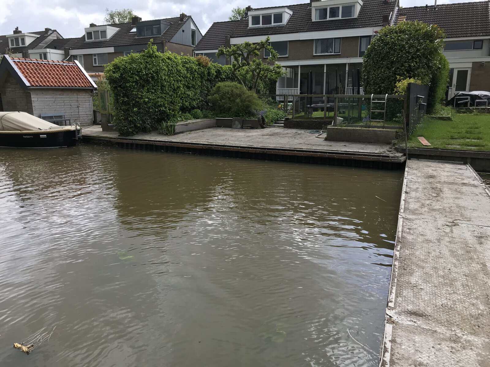 Omdat we met onze machines niet om het huis heen konden, zijn we via het water met pontons bij de walkant gekomen om de kunststof walbeschoeiing in Burdaard te plaatsen. Zo vinden we altijd een oplossing, ook als de situatie wat lastiger is. In een dorp als Burdaard is wonen aan het water genieten, en met een kunststof walbeschoeiing van Kunststofwalbeschoeiing.nl blijft dat ook zo.
