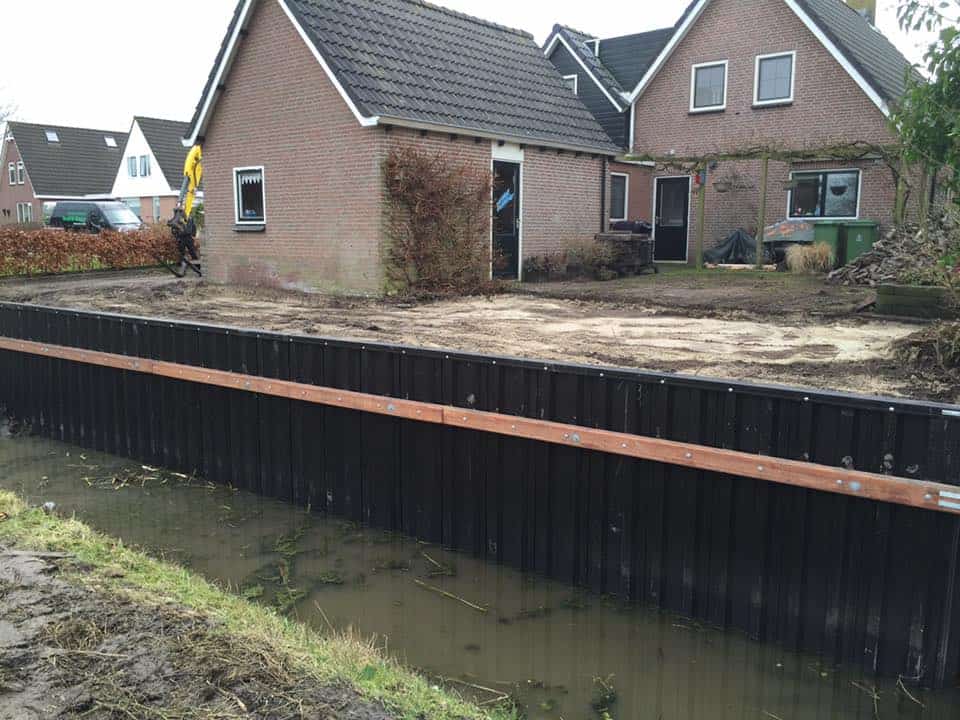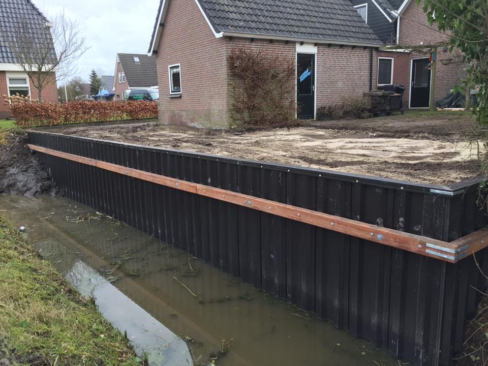 In Burgum is een kunststof walbeschoeiing geplaatst met een stevige houten gording als afwerking. De beschoeiing zorgt voor een strakke en duurzame waterkant die weinig onderhoud vraagt en de tuin een nette uitstraling geeft. De oever is hiermee goed beschermd tegen afkalving en klaar voor verdere inrichting van de tuin.