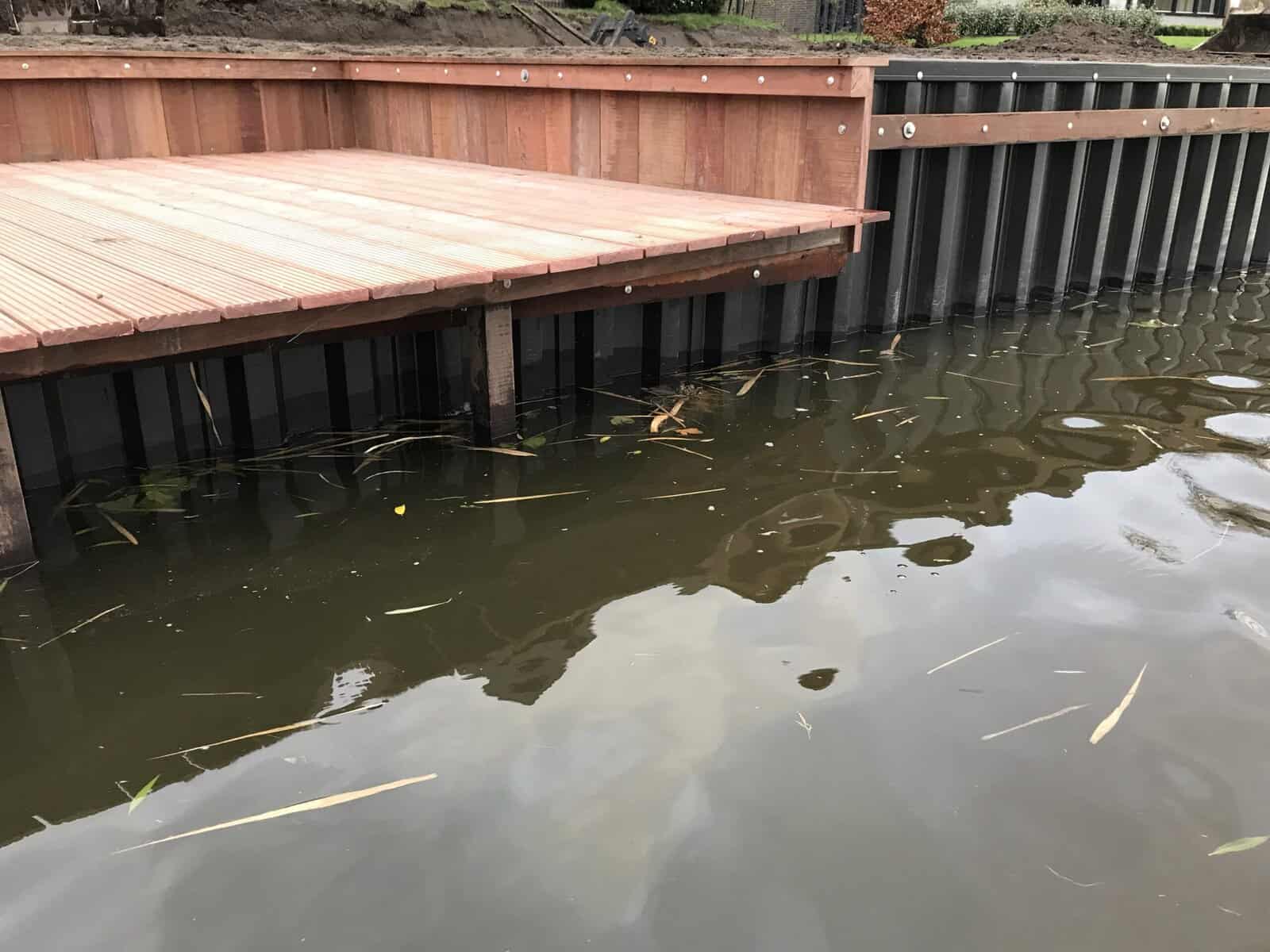 In Dokkum hebben wij deze strakke kunststof walbeschoeiing geplaatst. Door de combinatie met hardhouten gording en een ruim vlondergedeelte is er een duurzame en onderhoudsvrije oplossing gecreëerd. De bewoners kunnen hier jarenlang zorgeloos genieten van hun tuin aan het water.