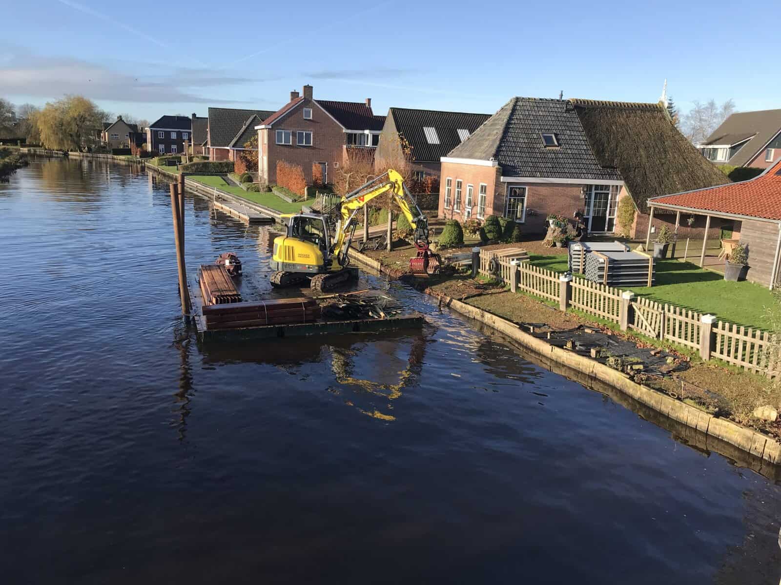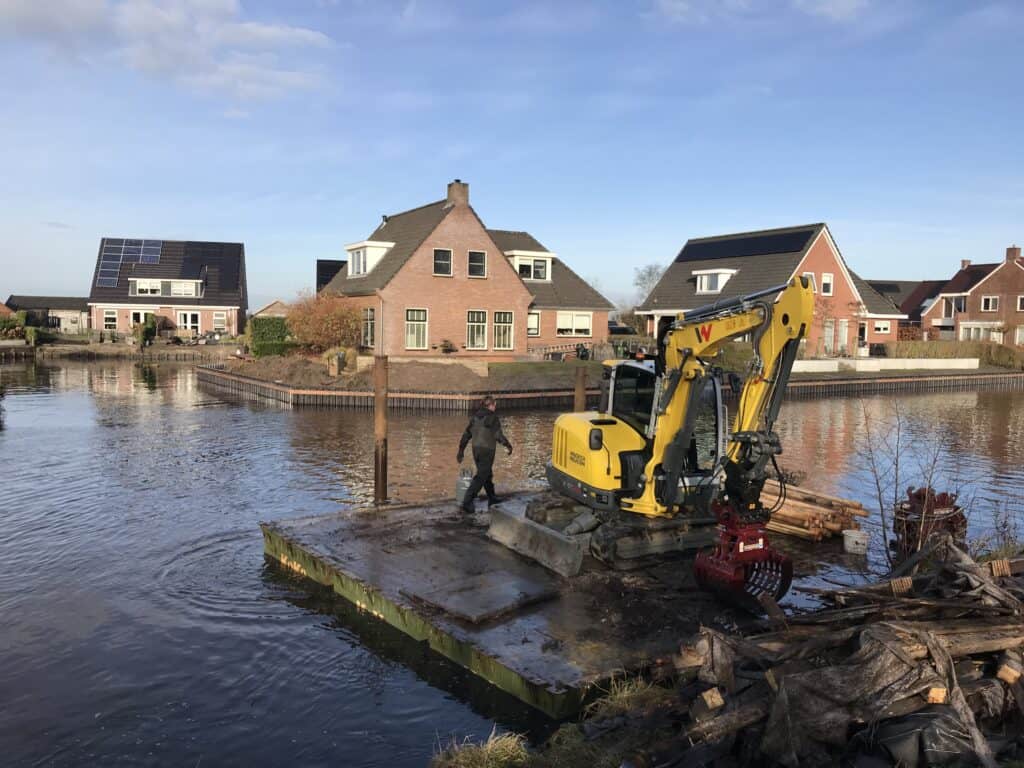 Wat een prachtig groot project in Gerkesklooster, midden in het waterrijke hart van Friesland. Hier wordt de oude oever vervangen door een moderne en duurzame kunststof walbeschoeiing, een enorme upgrade voor zowel stabiliteit als uitstraling. Het werk vanaf het ponton laat meteen zien hoe professioneel en strak dit wordt aangepakt.