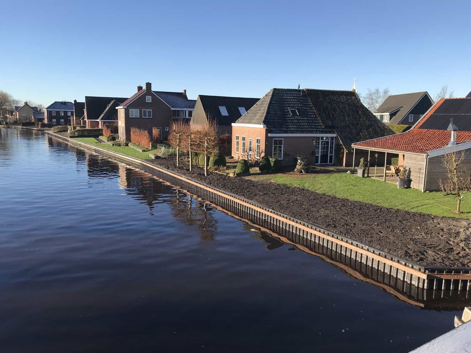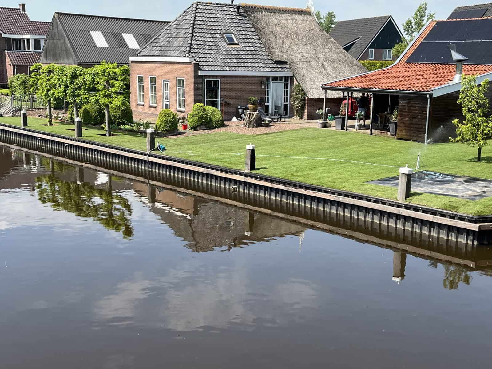In dit deel van Noord Nederland is water een vast onderdeel van het landschap en juist daarom is kwaliteit zo belangrijk. Kunststof walbeschoeiing blijft jarenlang mooi, rot niet, en kan perfect omgaan met wisselende waterstanden. Zeker bij langere oevers zoals hier maakt dat echt het verschil.