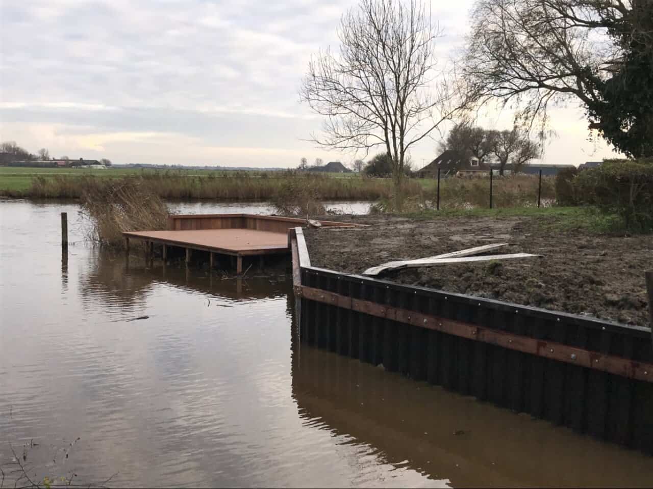 Voor een klant aan het water in Heeg hebben wij een kunststof walbeschoeiing geplaatst, gecombineerd met een aanlegsteiger en een terras direct aan de oever. Daarnaast hebben we ook een luxe carport van larikshout mogen realiseren.