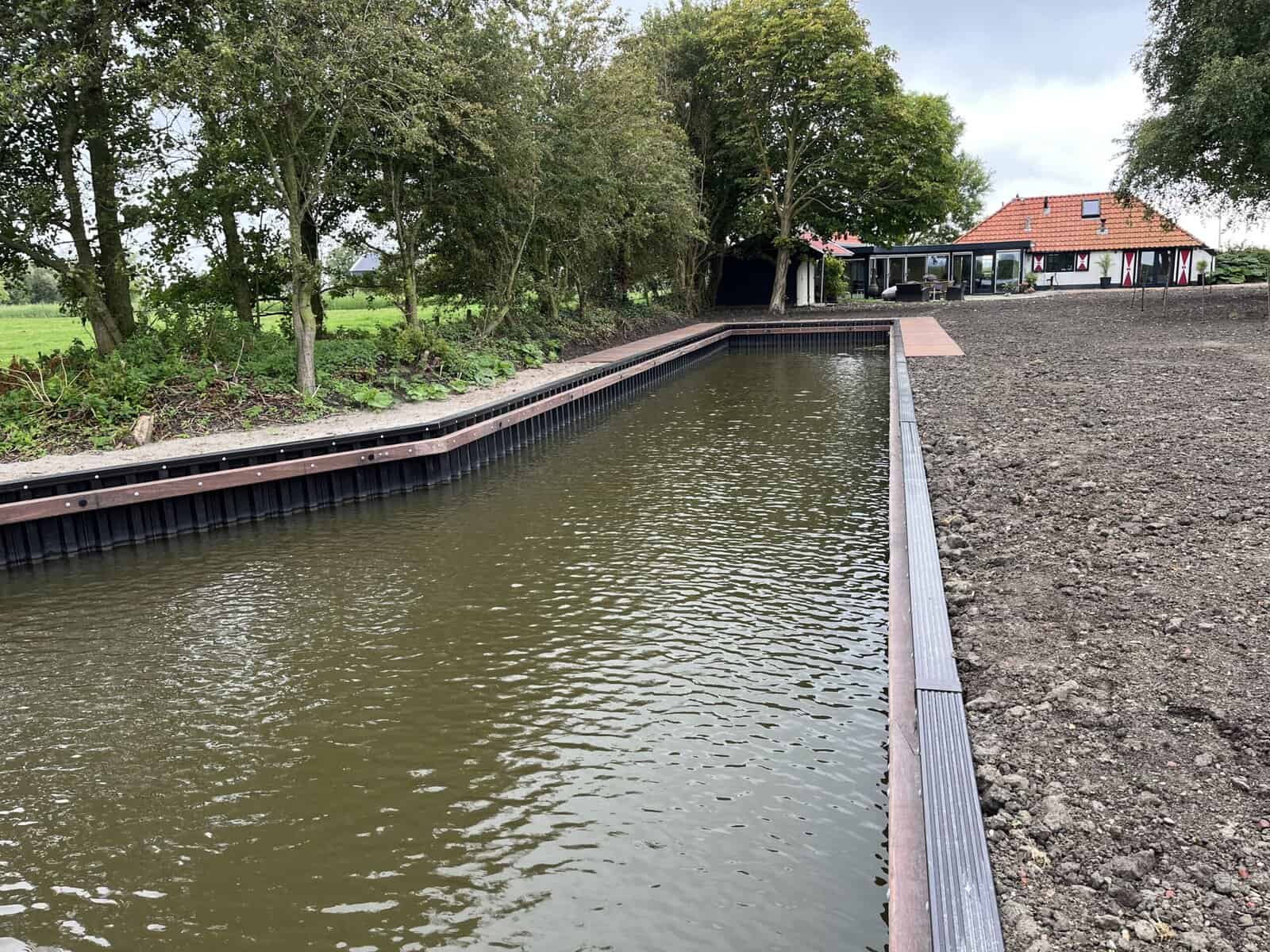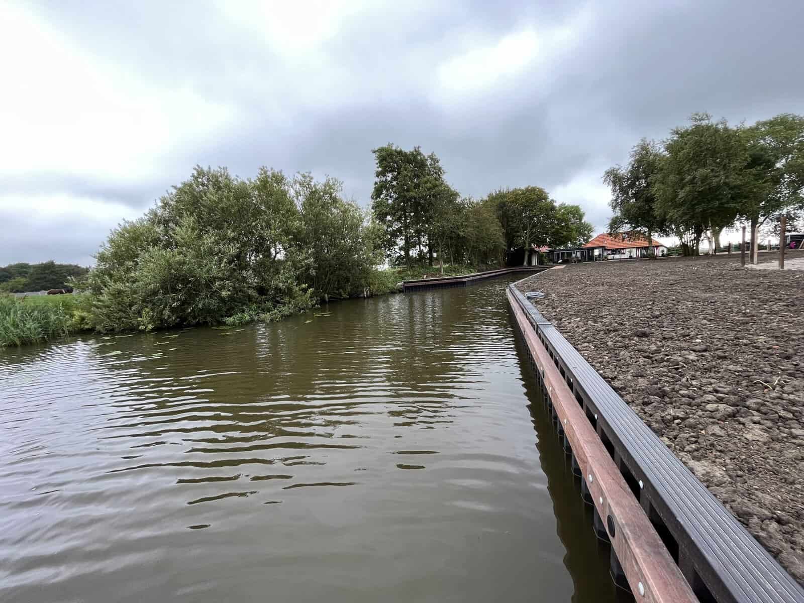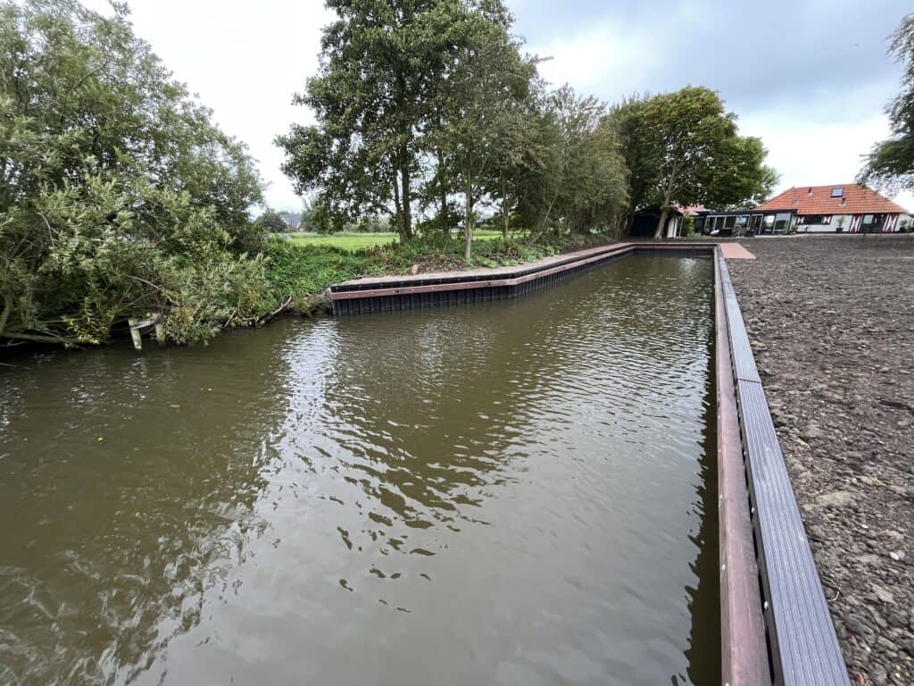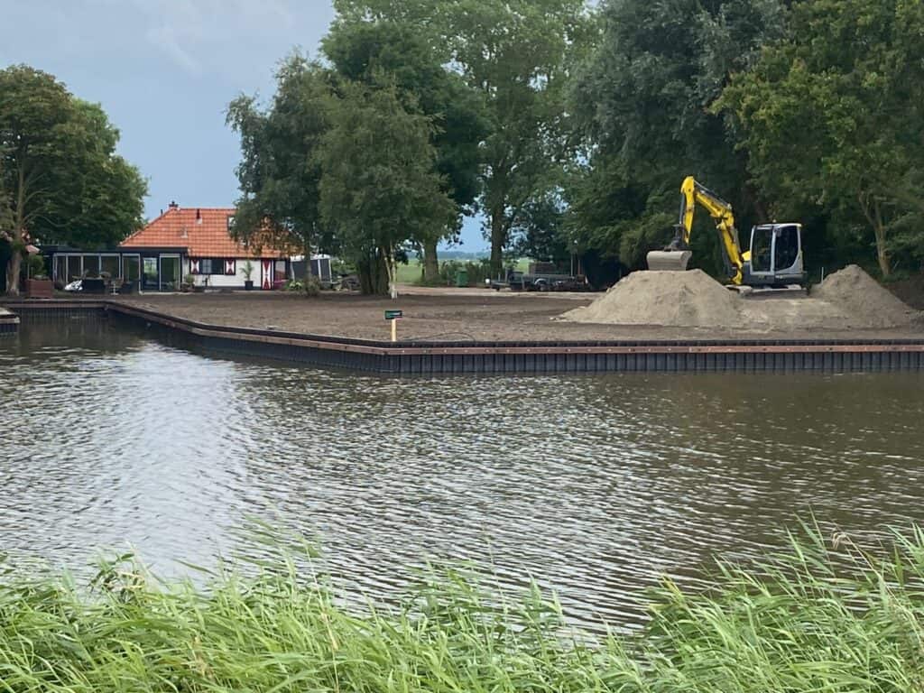 Wonen aan het water in Friesland heeft iets bijzonders: de rust, het uitzicht… maar óók de zorg om je oever netjes en stevig te houden. Op dit ruime erf in Burdaard is daarom de complete waterkant, inclusief insteekhaven, voorzien van nieuwe kunststof walbeschoeiing.