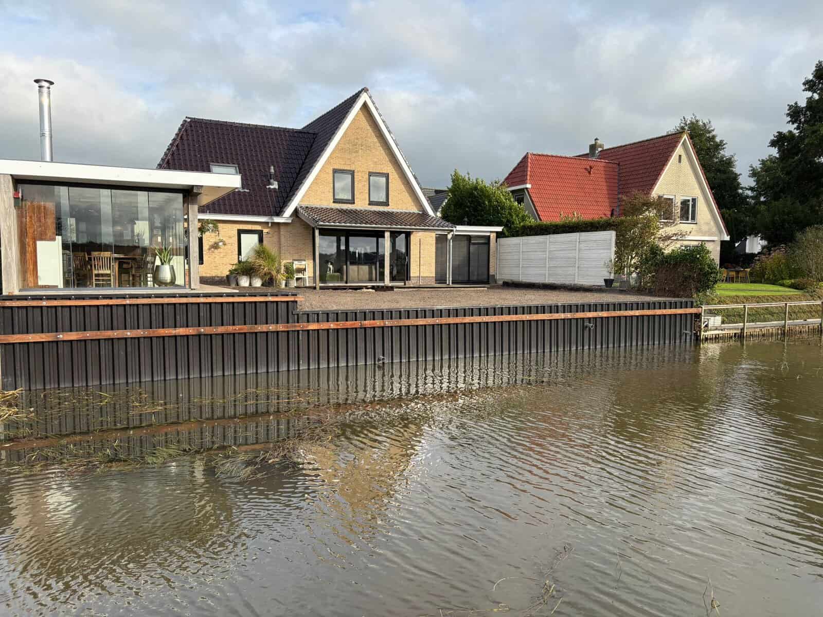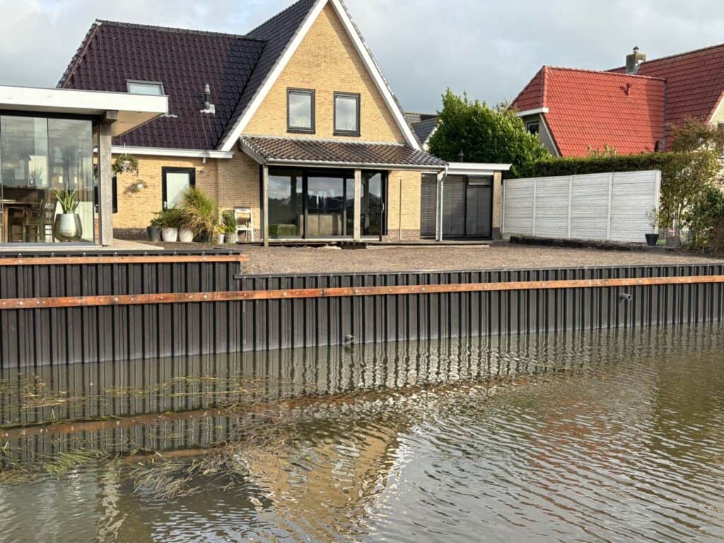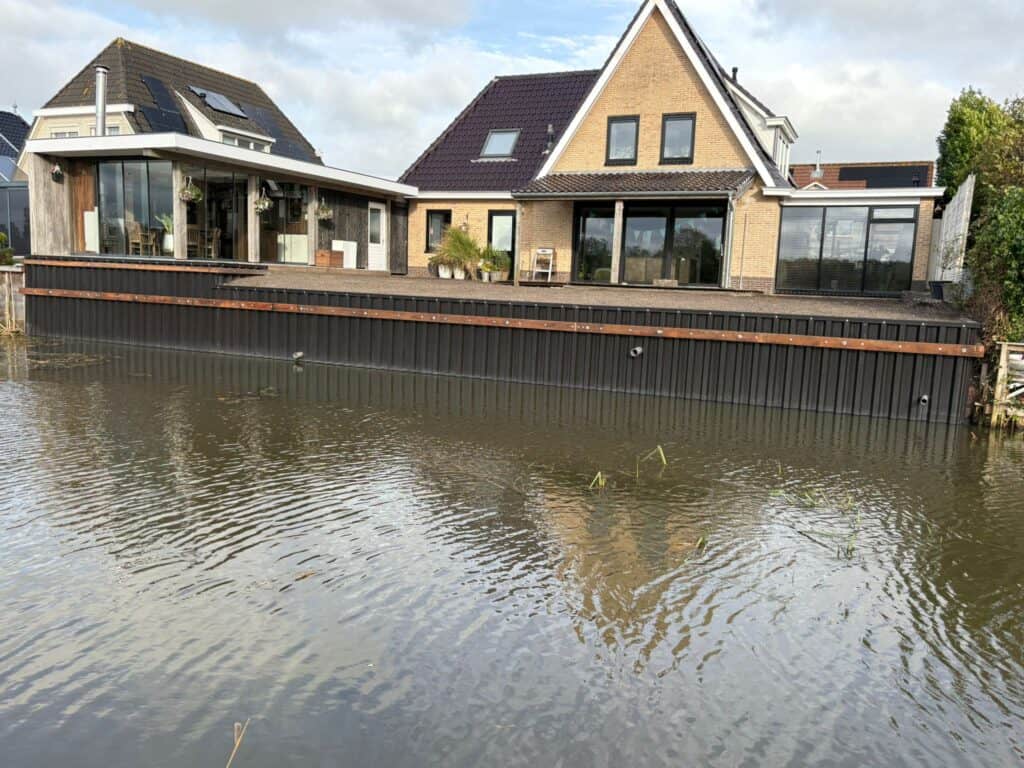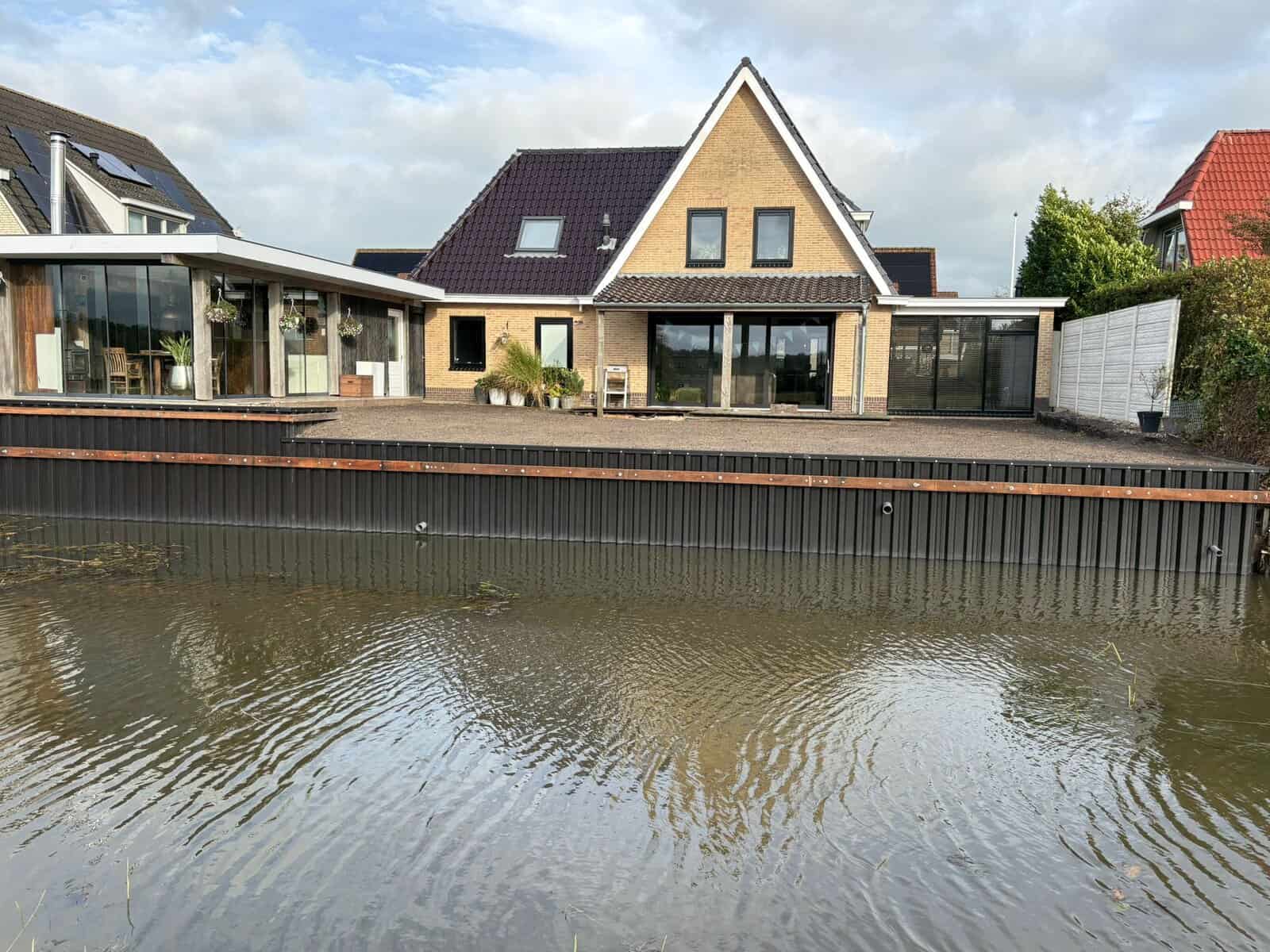 Wat een plaatje! Deze prachtige kunststof walbeschoeiing vormt een strakke en duurzame basis voor deze woning aan het water. Perfect afgewerkt, onderhoudsarm en mooi in lijn met het tuinhuis en de woning zelf. Zo wordt buiten genieten pas écht compleet; van ’s ochtends koffie aan de waterkant tot lange zomeravonden met uitzicht over het water.