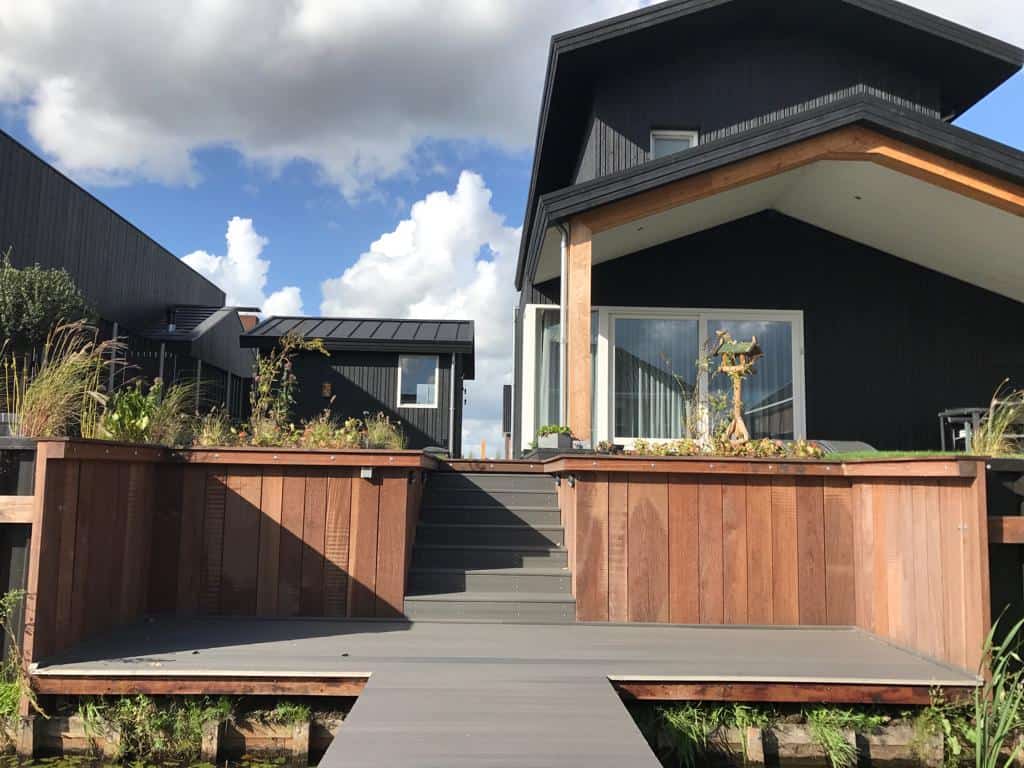 In Leek hebben wij een moderne woning aan het water voorzien van een nieuwe kunststof walbeschoeiing. De bestaande oever is volledig vervangen en afgewerkt met een combinatie van kunststof damwandprofielen en hardhouten bekleding, waardoor de tuin een luxe en eigentijdse uitstraling heeft gekregen.