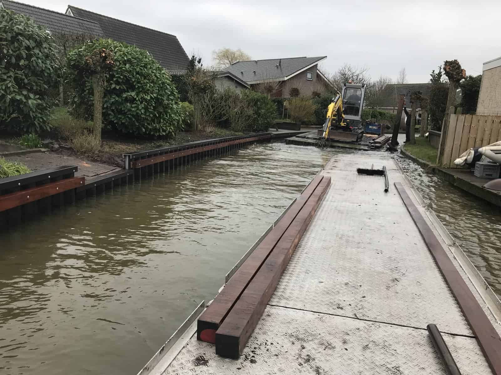 In Leeuwarden hebben we deze mooie kunststof walbeschoeiing gerealiseerd. Door het gebruik van duurzame materialen zoals hardhout en gerecycled kunststof is de beschoeiing onderhoudsarm en bestand tegen weer en water. De strakke afwerking zorgt voor een nette en stabiele oever, waar de bewoners jarenlang plezier van zullen hebben.