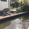 Deze kunststof walbeschoeiing met hardhouten gording en een hardhouten afdeklat geeft een natuurlijke, nette uitstraling. Binnen één werkdag hebben we de oude beschoeiing verwijderd en vervangen door deze duurzame kunststof variant.