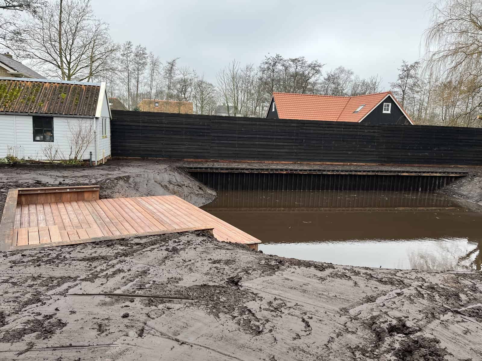 In Terherne hebben wij een compleet project gerealiseerd waarbij de oude situatie is omgetoverd tot een strakke, moderne tuin aan het water. Hier hebben wij duurzame kunststof walbeschoeiing geplaatst, gecombineerd met een hardhouten vlonder. Door de aanleg van de beschoeiing en de vlonder is er een functionele en onderhoudsvriendelijke waterkant ontstaan die perfect past bij de landelijke omgeving. Met een levensduur van minimaal 50 jaar is de keuze voor kunststof een duurzame investering waar de bewoners nog jarenlang plezier van zullen hebben.