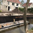 In Woudsend hebben wij opnieuw een tuin voorzien van duurzame kunststof walbeschoeiing bij twee woningen. De bewoners wilden graag een luxe veranda met tuinhuis realiseren en kozen daarom bewust voor onderhoudsarm kunststof. Over vrijwel de volledige breedte van de tuin is de veranda met tuinhuis geplaatst.