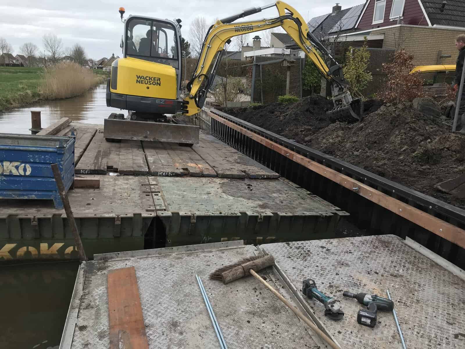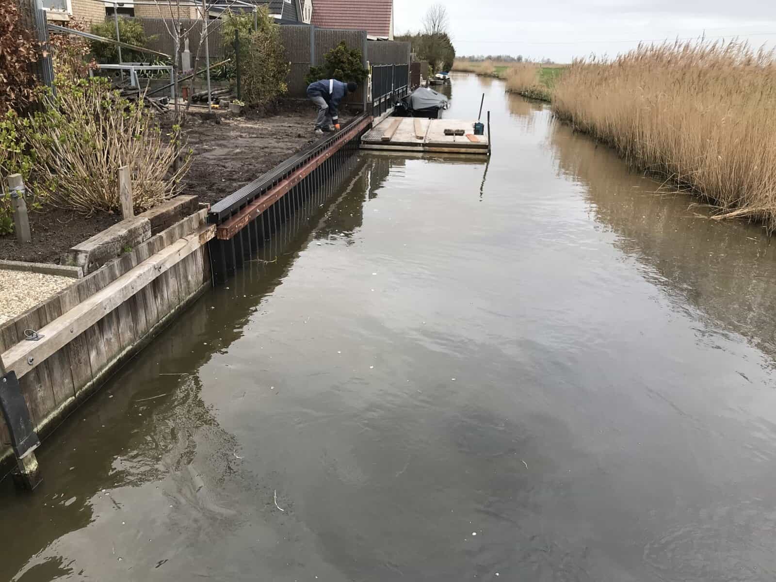 In Woudsend hebben we namens een buurtcollectief 15 tuinen voorzien van nieuwe kunststof walbeschoeiing. De bewoners hadden samen gekozen voor een duurzame oplossing, zodat ze jarenlang geen omkijken meer hebben naar de waterkant.