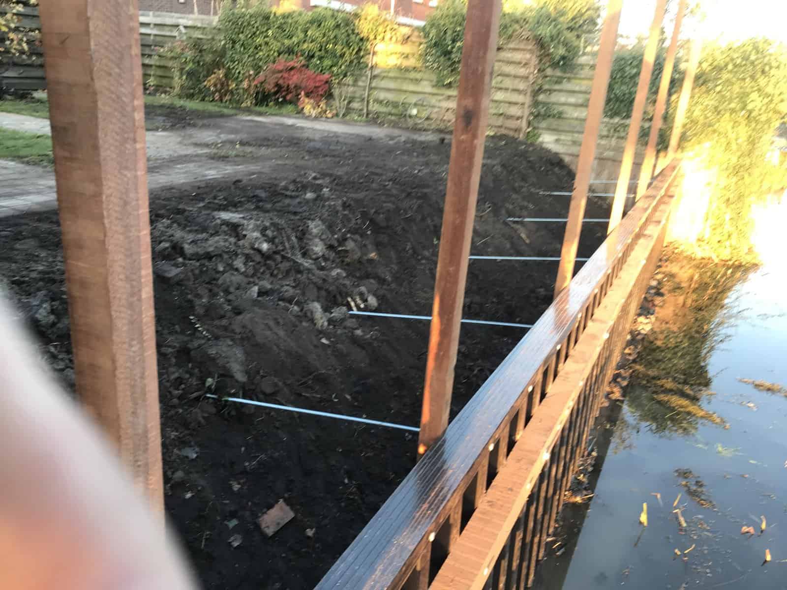 In Lemmer hebben we een tuin voorzien van nieuwe kunststof walbeschoeiing. Naast de beschoeiing hebben we ook het grondwerk verzorgd, zodat de tuin weer netjes en strak ligt. Daarna hebben we een nieuwe schutting geplaatst langs de kavel.